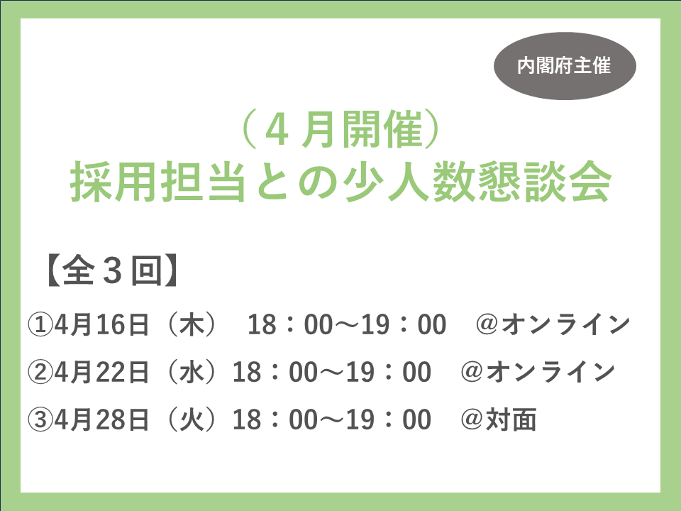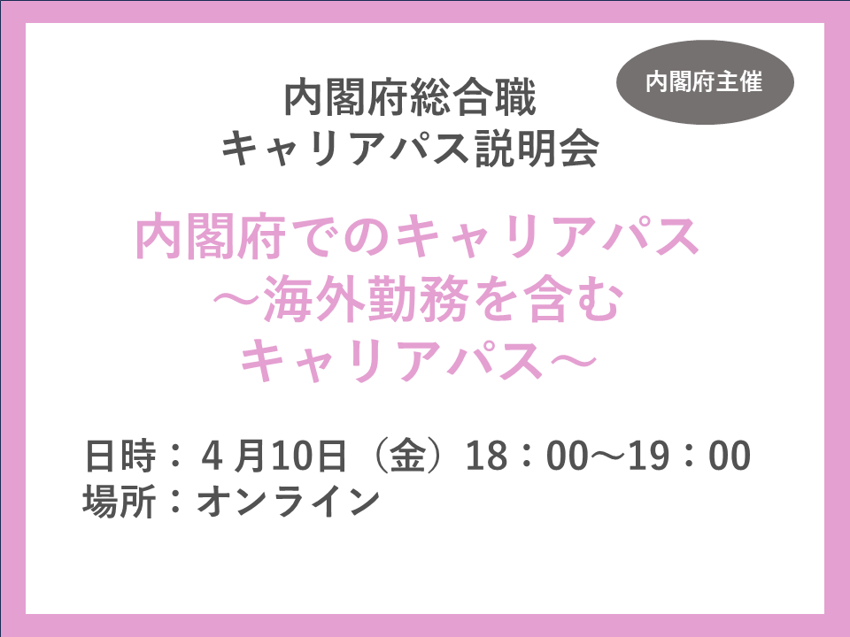 内閣府の採用担当という立場から、皆様に伝えたいことなどもお話ししますので、ぜひ…